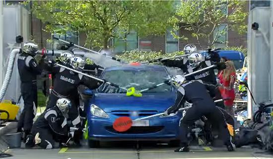 25 六月, 2014 Mr. 6 把F1等級的服務搬到加油站,讓F1賽車技工幫你洗車,並且有F1冠軍車手開著賽車在現場等著和你合照,賽車級機油品牌「美孚」用誇張的手法宣傳,吸引大量社群和新聞媒體曝光 美孚最近為了宣傳新的賽車級高級機油,便在倫敦一家加油站中為前來洗車的顧客奉上賽車級的待遇。請來一整隊的專業F1賽車技工,全副武裝的幫你把車洗乾淨。在一旁還有前F1世界冠軍詹森巴頓開著F1賽車與顧客在等候洗車時合照。此街頭活動吸引大量媒體報導,也成功的在社群網路上引起關注。