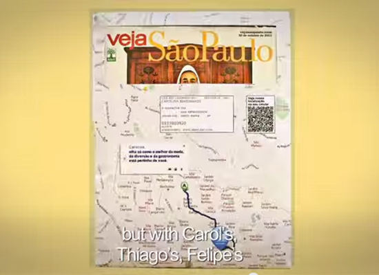 8 七月, 2014 Mr. 6 當收到訂閱的雜誌,信封袋上面有你家到新百貨公司的路線規劃圖,是否會吸引你的注意呢?巴西新開幕的百貨公司為知名雜誌當地的6000多位訂戶個別客製“到店路線地圖”的信封袋,吸睛度破錶 位於巴西聖安德烈的Atrium百貨公司新開幕,想要吸引當地住戶的目光,將雜誌訂戶家到百貨公司的Google規劃路線地圖印在雜誌寄送的信封袋上給當地6000多位雜誌訂戶,讓大家都能方便的到Atrium去逛街。Atrium與巴西最暢銷雜誌Veja合作,將訂購的雜誌放入Atrium客製的路線信封裡再寄給訂閱者,吸引當地居民到訪。