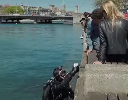 潛水夫從蘇黎世的河畔浮起,邀請路人跳下6度的河水中自拍,就能獲得免費的 S5,吸引大量路人圍觀和網路分享,成功宣傳S5的水中拍照功能