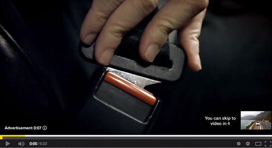 福特Ford最近在南非利用YouTube上的In-Stream略過廣告來公益宣導行車安全。“當繫上安全帶只有幾秒鐘,你沒有理由不繫上”。福特善用Youtube廣告前5秒略過不收費的特性,大量播出,也利用廣告無法略過的特性,連結繫安全帶不用花太多時間而且不能被忽略的訊息。