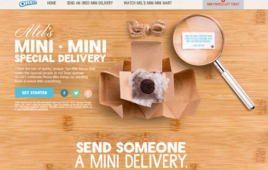19 八月, 2014 Mr. 6 推廣迷你版Oreo,將Oreo夾心餅乾變成精緻小驚喜幫網友寄送給他們的朋友。每天限量500個,吸引網友每天到網站報到爭取,創意派樣活動兼具品牌行銷效益 Oreo為了宣傳Mini Oreo迷你版巧克力夾心餅乾,發起了「Mini Delivery」(迷你寄送)行銷活動,結合網路影片和活動網站宣傳,只要上活動網站填寫給朋友的話,前500位就可以將迷你版的Oreo餅乾包裹寄送給朋友,表達心意。
