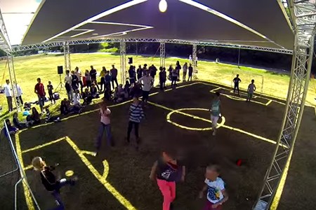 宣導防曬避免皮膚癌,瑞典的防癌基金會Cancer Fonden搭建創意遮陽棚,讓陽光透過遮蔭形成足球場的樣子,然後邀請小朋友來踢球玩耍,提醒大家不要在大太陽底下曝曬,避免罹患皮膚癌