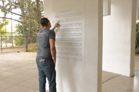 推廣有聲書,把書的文字內容變成一條條的五線譜放在公園裡面,吸引路過民眾注意,發現的好奇路人都會停下腳步“閱讀”樂譜,然後就會發現其實海報可以“說書”像音樂一樣用聽的,只要將手機靠上海報,就可以聆聽一個章節