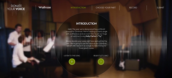 27 十月, 2014 Mr. 6 捐出你的聲音,知名音樂製作人會將所有的聲音混製成聖誕節單曲販賣募款,並將所得捐出。英國網路超市Waitrose集結大家的聲音一起錄製成聖誕節單曲做公益,音樂也會成為Waitrose的電視廣告配樂,創意公益活動,成功吸引網友注意 捐出你的聲音,知名音樂製作人會將所有的聲音混製成聖誕節單曲販賣募款,並將所得捐出。英國網路超市Waitrose集結大家的聲音一起錄製成聖誕節單曲做公益,音樂也會成為Waitrose的電視廣告配樂,創意公益活動,成功吸引網友注意。