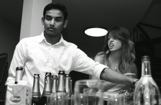 用完餐,副餐飲料裝在美麗的杯裡,但相當難喝,我們沒聊幾下,友人提議,還是到其他地方喝個東西好了。這時候,他又發現,還要自己將桌上的東西全都清乾淨,所有的廚餘還要歸位……。「別忘了,自助式的。」我笑著提醒他。