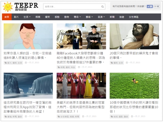 TEEPR是甫於去年闖進全台灣前20名網站其中一個(其他的包括Gigacircle、Life.com.tw等)。你可能早就在TEEPR上面讀過一些有趣的文章、有趣的影片,你按讚,你分享,你介紹給你的朋友。但,為什麼TEEPR可能是「新媒體之王」,而不是其他?