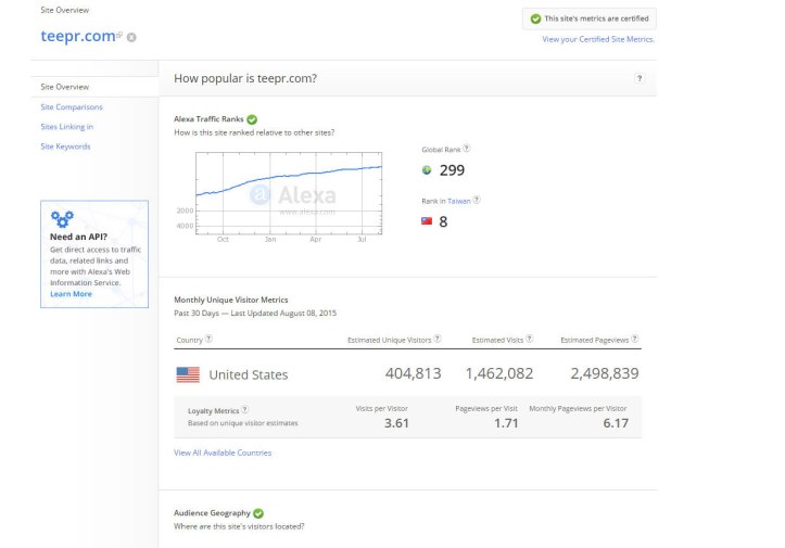 才創立400多天的TEEPR,目前在Alexa排行為全台灣第15名,媒體類第5名,看起來離「媒體之王」仍差一小步,但有一些數字、一些跡象,看得出TEEPR即將成為「新媒體之王」。