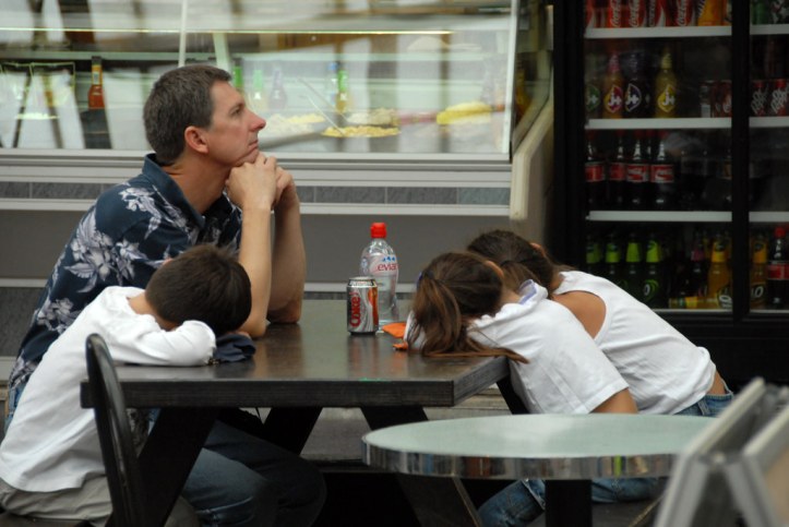 他們吸引了我,因為那個年輕爸爸,顯然正在對他家小朋友「訓話」─—