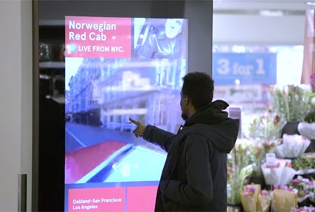 用手指滑動,遙控在另一個國家的計程車!挪威航空Norwegian Air Shuttle ASA於挪威推廣紐約航班,直接在商場架設視訊介面,讓路人可以與位於紐約裝有360° 攝影機的“紅色計程車”互動,直接指示遠在紐約的駕駛,到想要遊覽的地方看看,引起挪威人的關注和興趣