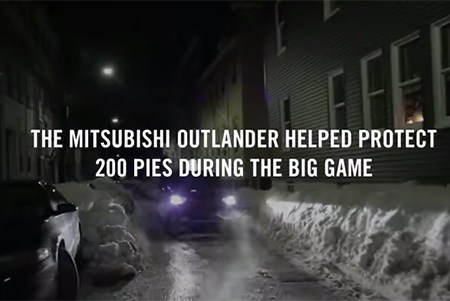 展現雪地安全性能,Mitsubishi汽車提供Pizza外送員新推出的休旅車,在忙碌的超級盃這天外送並側拍紀錄,一天下來外送員在積雪的城市中共送出200個Pizza,Mitsubishi藉由“保護Pizza”的另類的方式展現雪地安全性能,加深網友印象