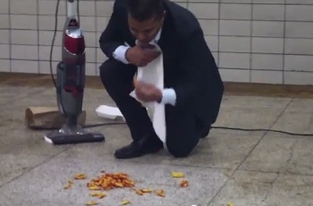 證明自家的吸塵蒸汽拖把機能不靠化學藥劑,輕鬆將地板髒污完全洗淨,BISSELL資深品牌經理在人來人往的地鐵站月台用自家產品清乾淨一小塊地板,然後把義大利麵倒到地板上並優雅的吃光光,奇怪舉動引人好奇觀看,同時展現產品超強洗潔力
