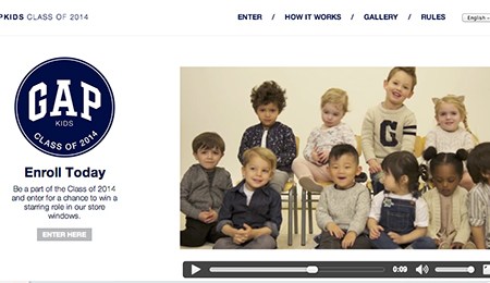 服飾品牌Gap為童裝成立品牌模特兒學校,家長只要填妥報名表,並上傳三張小朋友照片,就可以馬上看到由自家小朋友為主角的Gap微廣告影片並分享給親友,2015年還有機會出現在Gap的分店櫥窗上