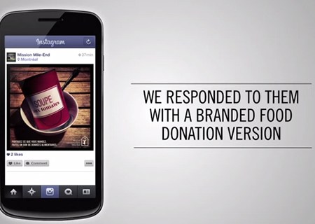 分享你的食物照片給網友看,也請分享你的食物給需要的人。加拿大慈善組織每天監看網路美食照片標籤,只要有相關照片被分享,慈善組織就會用該類食物的罐頭示意照片回覆,鼓勵大家“分享你所吃的食物”,創意募捐活動吸引600倍的罐頭捐贈
