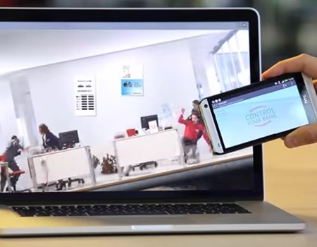 為了推廣行動APP銀行服務,羅馬尼亞UniCredit Tiriac Bank把銀行讓民眾用手機控制,裡面的行員會因為手機擺動,而東倒西歪,傳達"Control Your Bank"廣告口號
